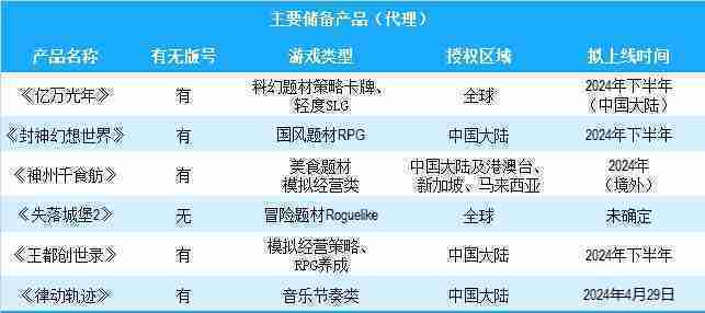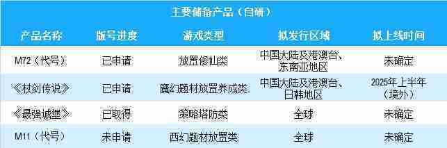 公司有多款储备产品,,,,涵盖放置类、、、、策略类、、、、RPG、、Roguelike等多元化游戏品类,,储备的主要自研和代理产品如下::