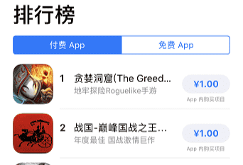 祝贺《贪婪洞窟》登上iOS App Store付费游戏排行榜第一!!!